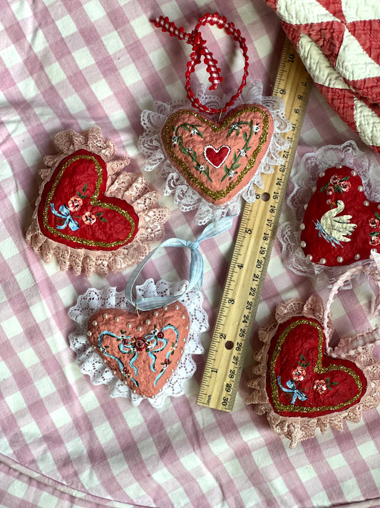 paper mache gold glitter and flowers heart (ornament) PREORDER
