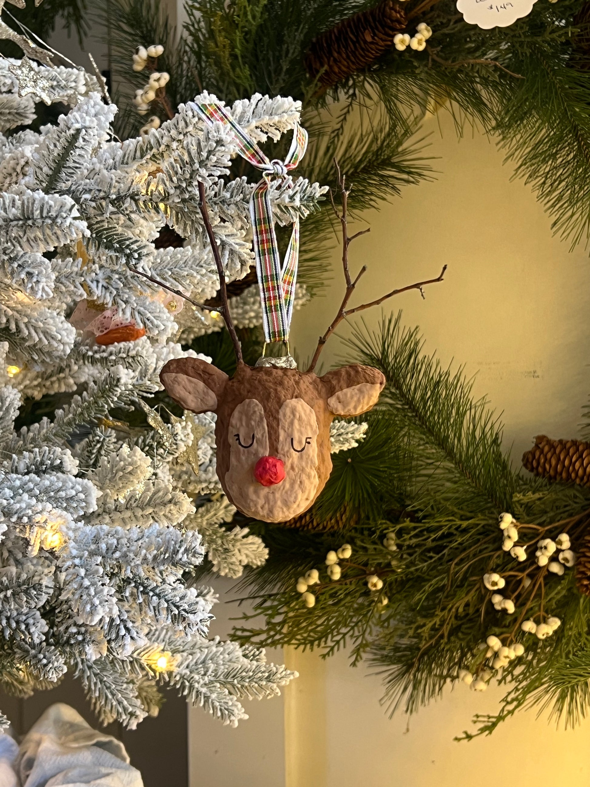 paper-mache reindeer ornament